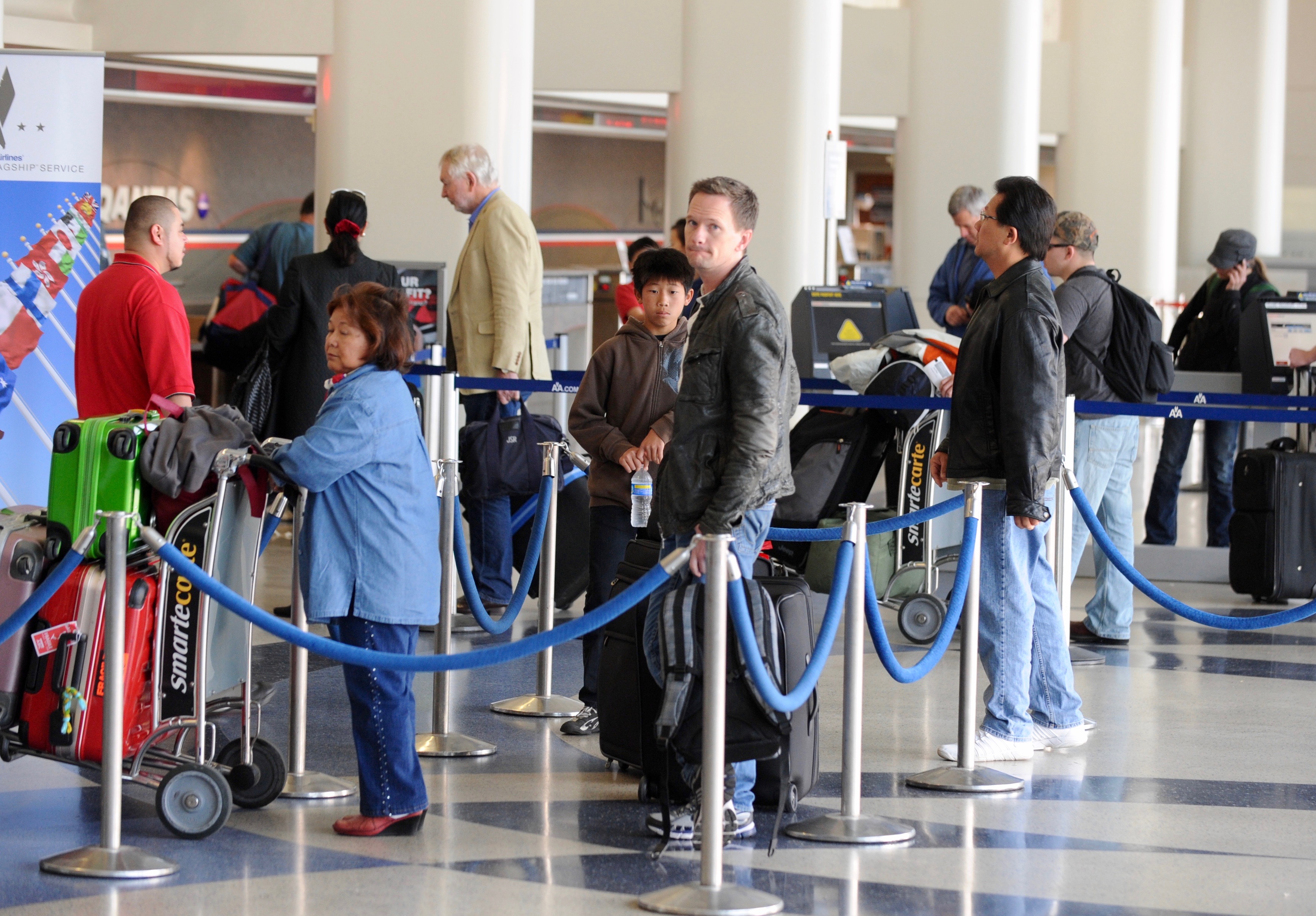 An airport rep finally recognized him and help Neil out. So he skipped all the lines.