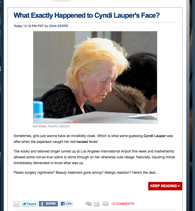 I only saw her once, and it didn’t even look like her. It was one of my latest most popular pictures that got paid well enough. A small frame was actually in the cover of several magazines and that’s because well… Lauper didn’t really look like herself. I believe that’s the same day I broke my record of most celebrity shots at LAX (more than 28). I wasn’t even interested in Lauper, but a friend of mine told me that she looked horrible and that I must take pictures of her. Jon Hamm and Katrina Bowden were going through LAX at the same time, so I only managed to take a few pics of Cyndi. Those fe pics were worth more than all that I shot that day. Pics are from January 31st, 2011, a few months before I quit the paparazzi gig.