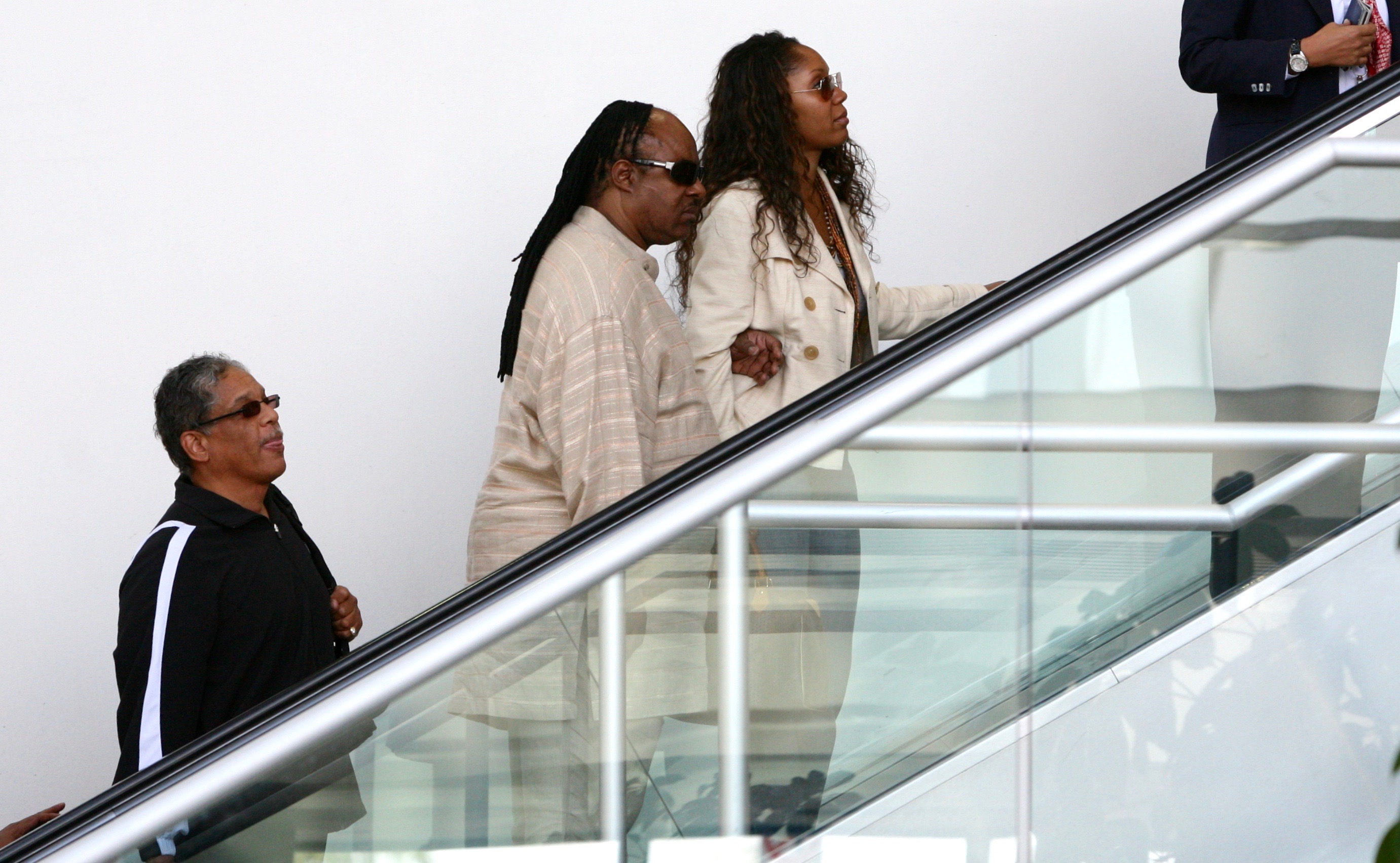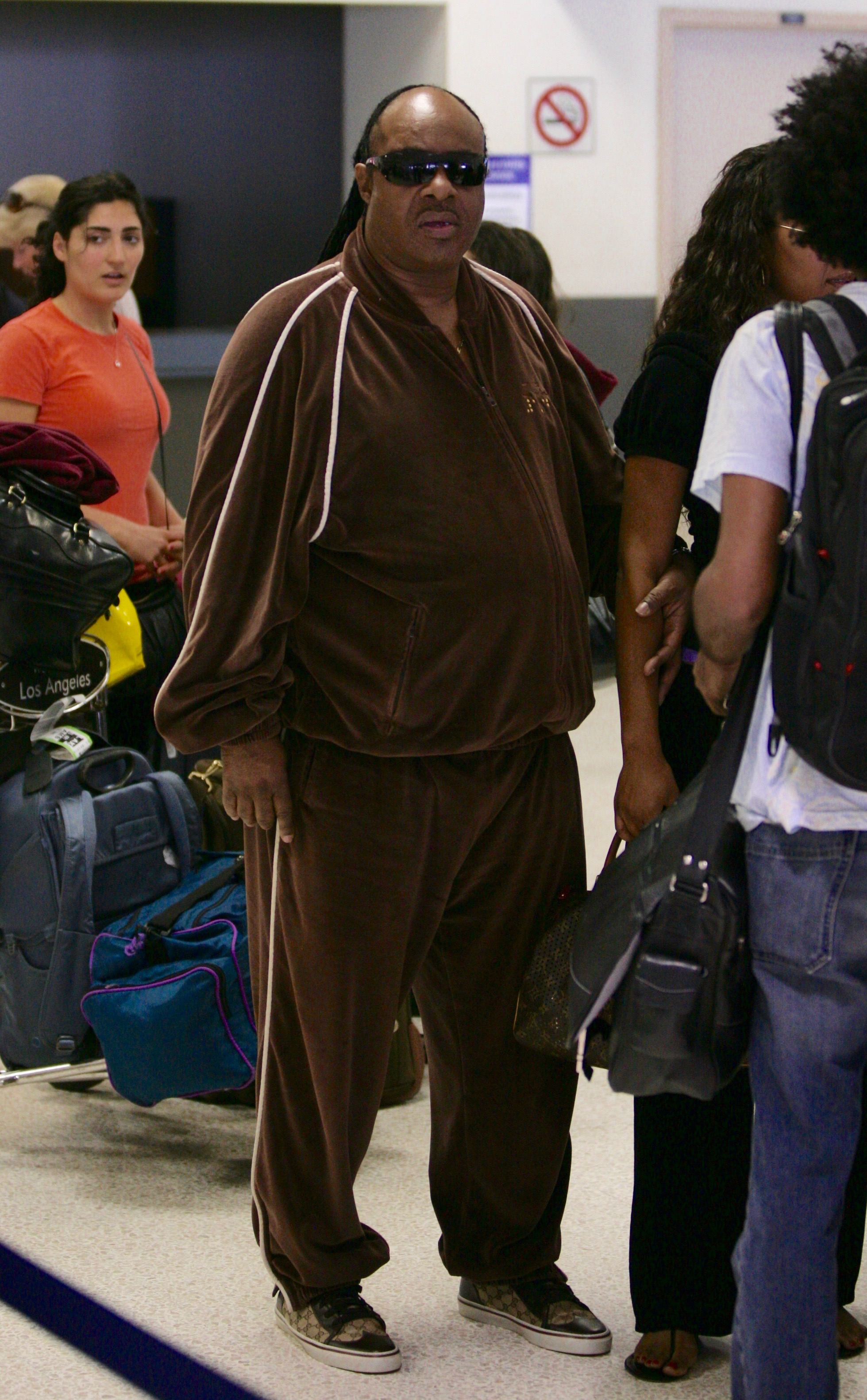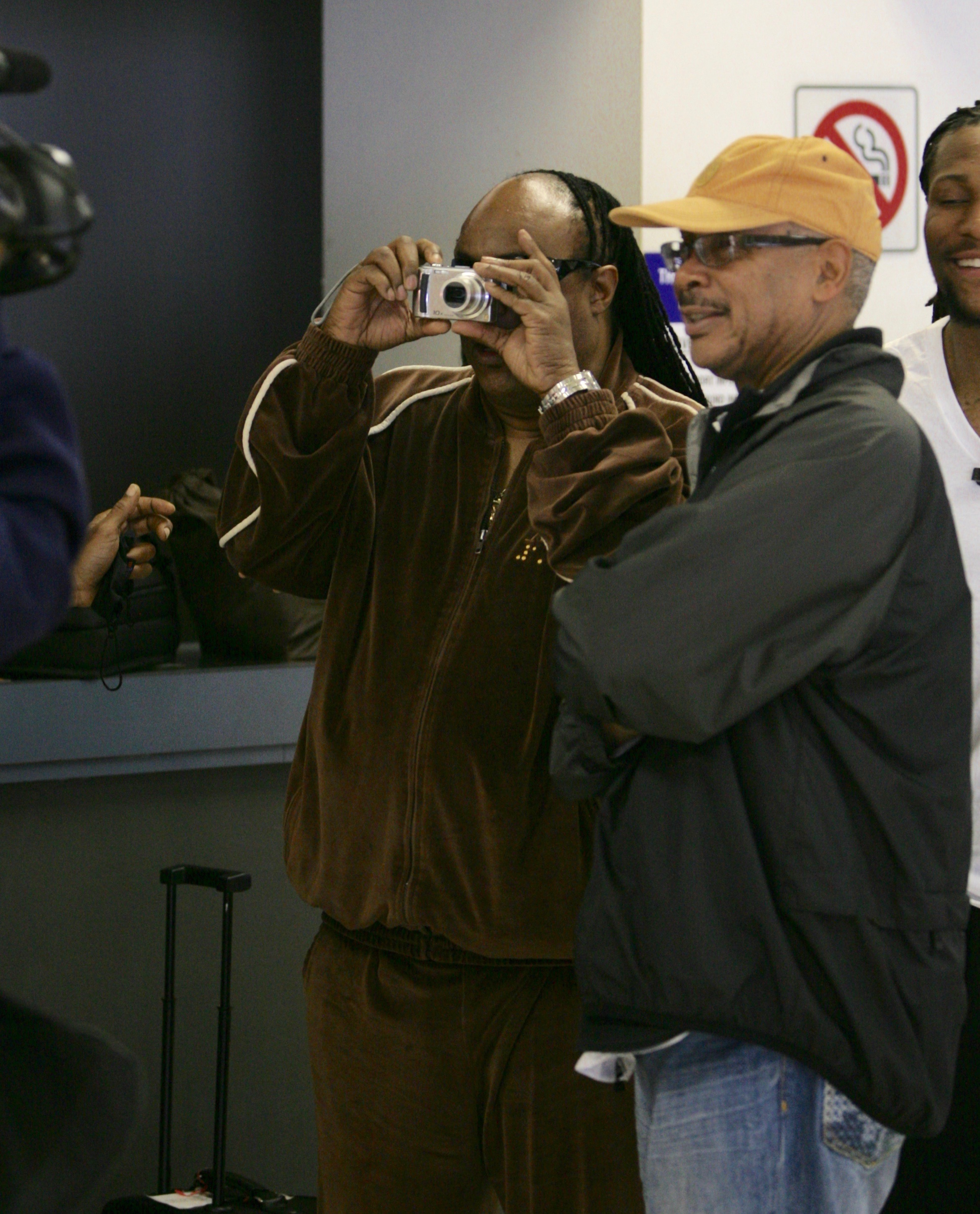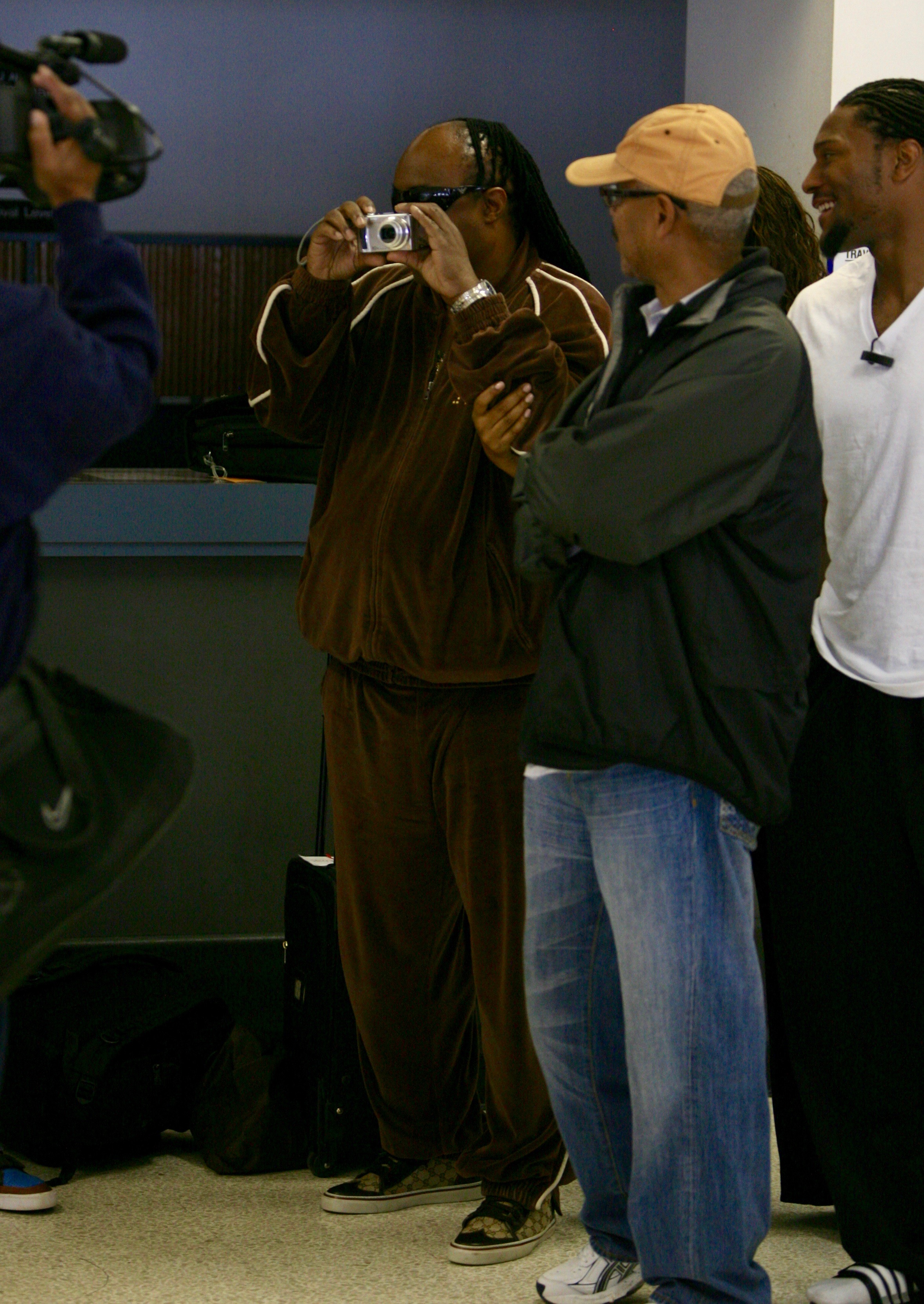 First and foremost, I am a fan of Mr. Wonder. Not an all out fan that loves all his work, but we had to play some of his songs for jazz combos while I was in college and those bass lines, so sick. So much fun to play. So fucking grooving. I saw him twice. Both the same week. One departing, the other arriving. When he was arriving they told him we were taking his picture, so he decided to fool around and take a picture of the paparazzi. It was hilarious.