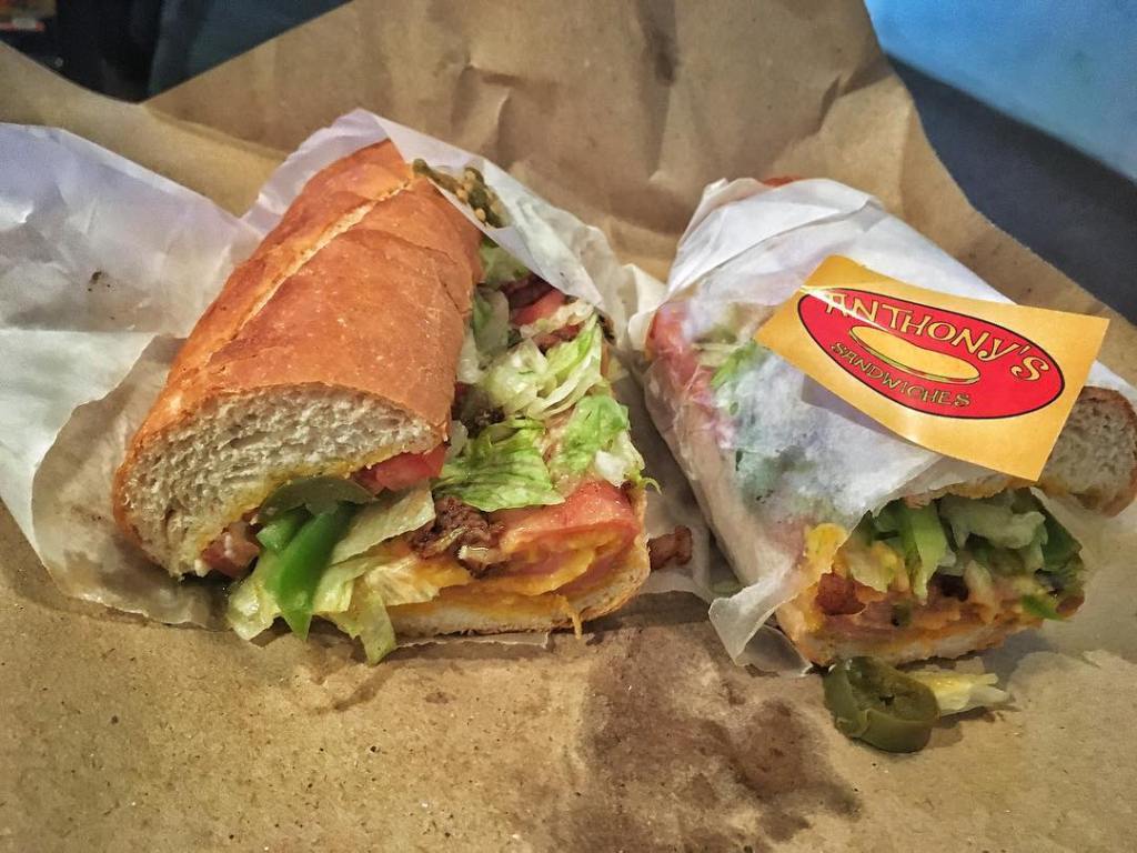 My second visit to Anthony’s Sandwiches. This time I got the “Trucha” which has ham, bacon, lettuce, American cheese, cheddar cheese, tomato, bell peppers, jalapeños, and mayonnaise.