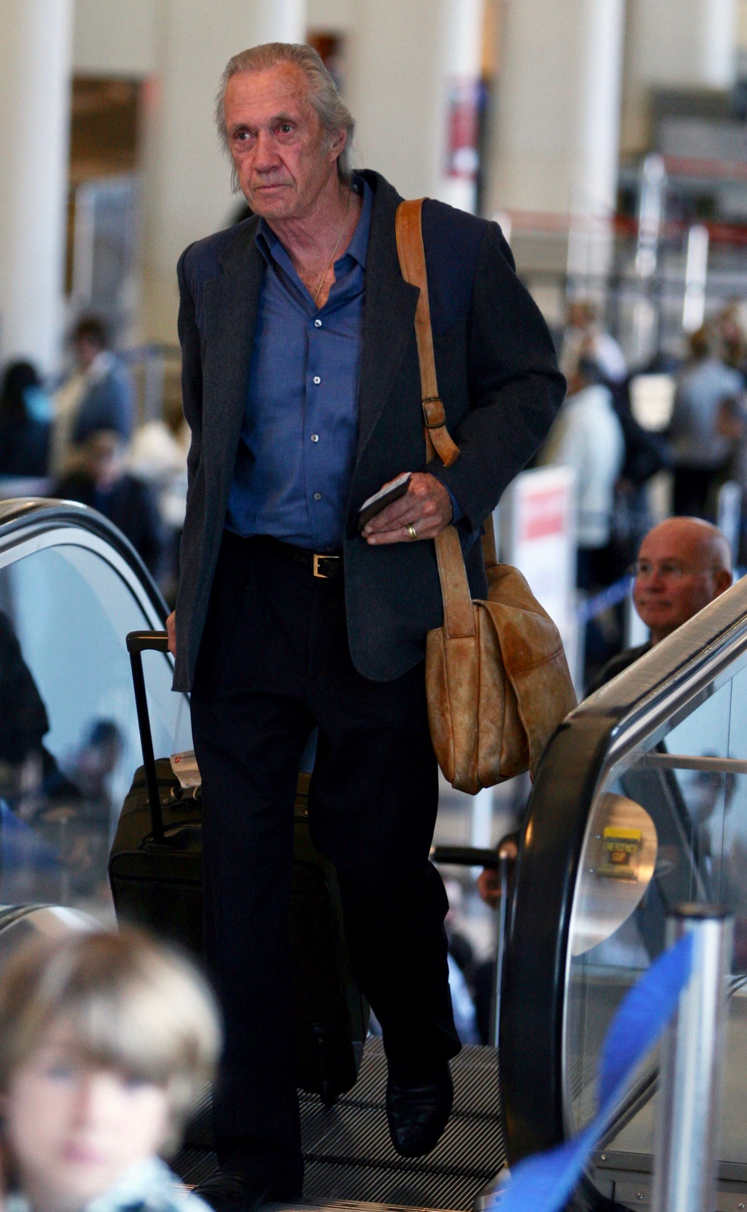 Why him? I don’t need no fucking reason. But this is why. The bathroom at Voodoo Stu’s is covered with movie and concert posters from Southern USA. One of them features Sidney Poitier. Another one has David Carradine. I was reading both of their Wikipedias of these two legendary men. And holy shit. David Carradine was an insane mother fucker.