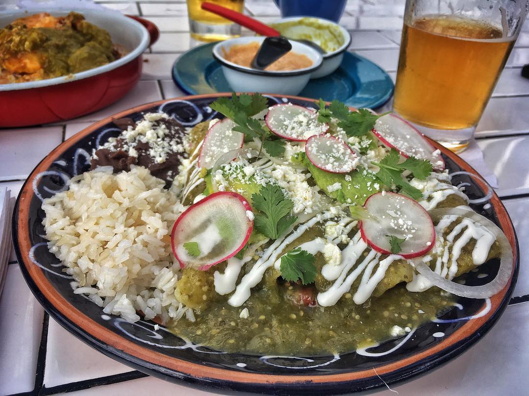 Enchiladas verdes for me (1 vegetable, 1 queso, 2 de pollo):