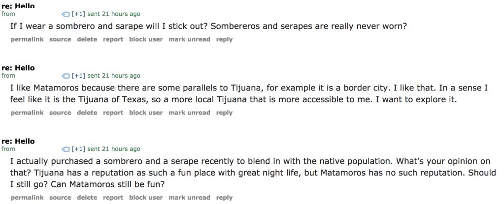 Just for reference, he is from Houston, Texas and he has been posting in Mexican subreddits looking for help in where to move. Sounds like he is running away from something.