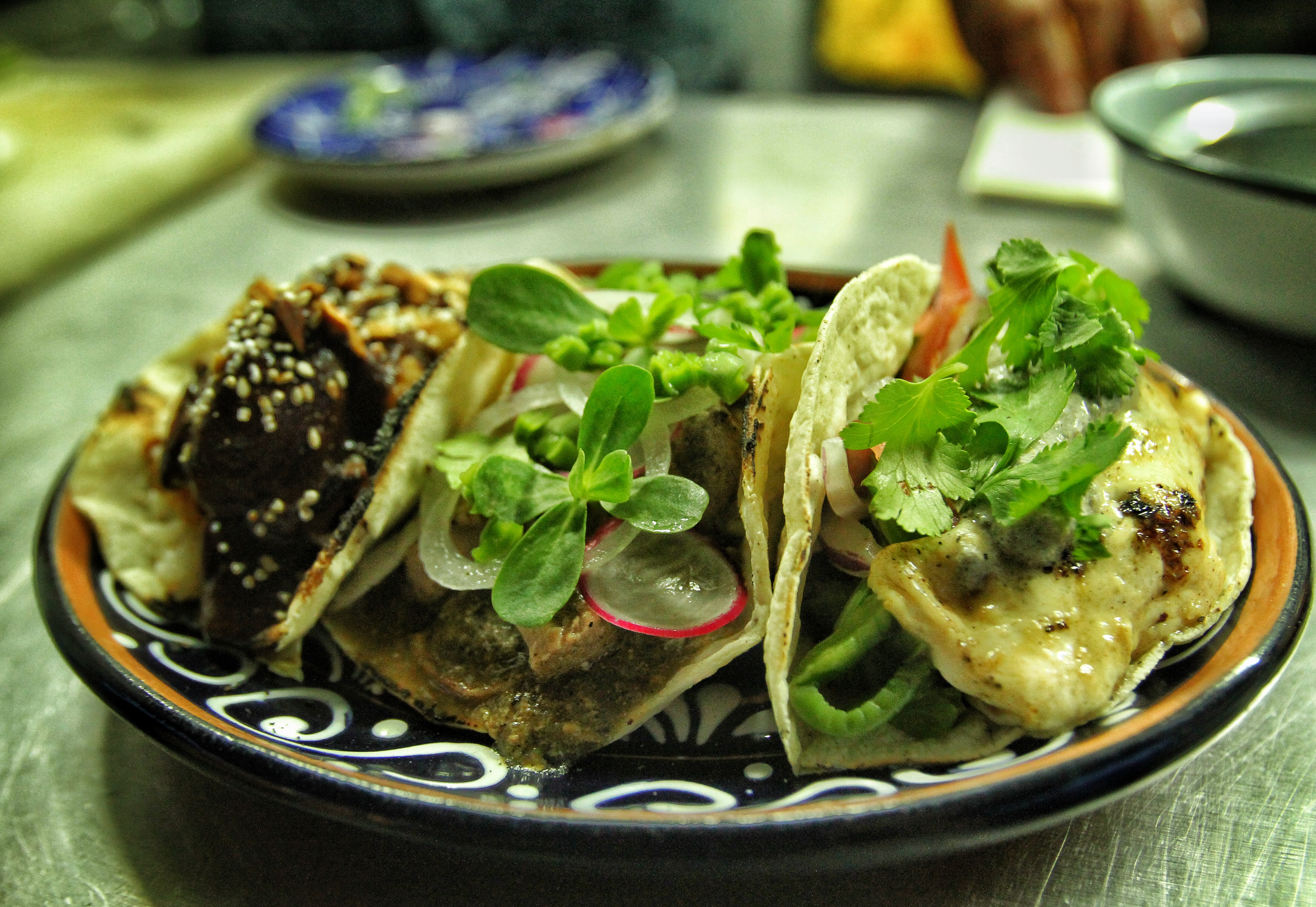 That’s a cauliflower mole taco, pork in green salsa, and nopales with panela cheese.