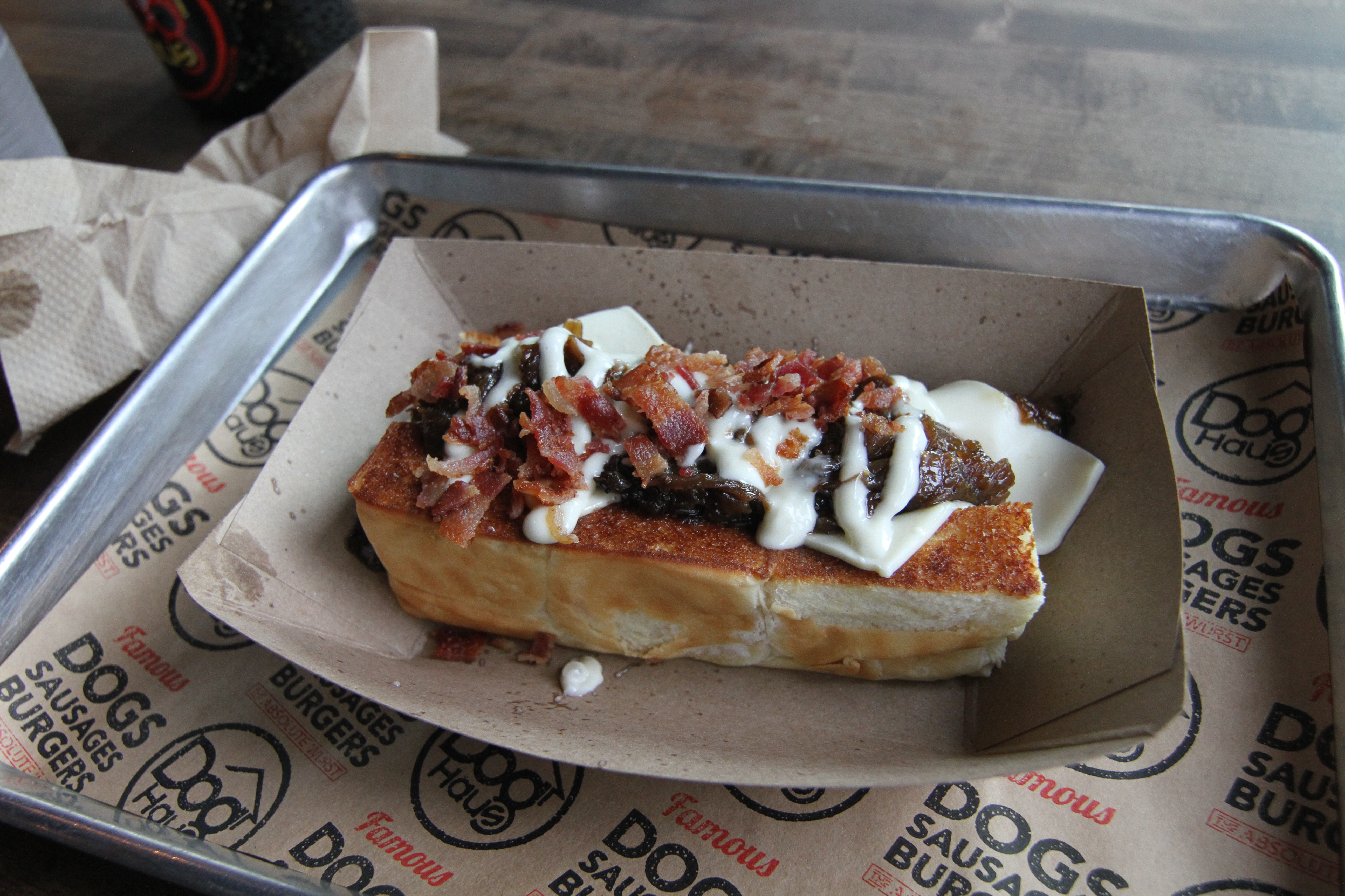 It was a messy eat, but a good eat. Sausage was pretty dank, bread was soft and delicious, toppings were a fucking mess, cheese was not present, but bacon grease was all over.
