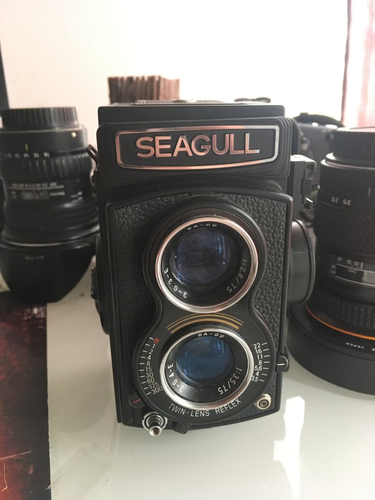 I was carrying my hipster 1960s film camera twin lens reflex medium format Chinese made Seagull. The film was $5.75 for 12 pictures. I’ve shot 5 pictures so far. I used one on a picture of K-Wamo and Chris. Obviously… I have no idea how the pictures will turn out until I develop the film. Which brings the question, where the fuck am I going to develop medium format?!