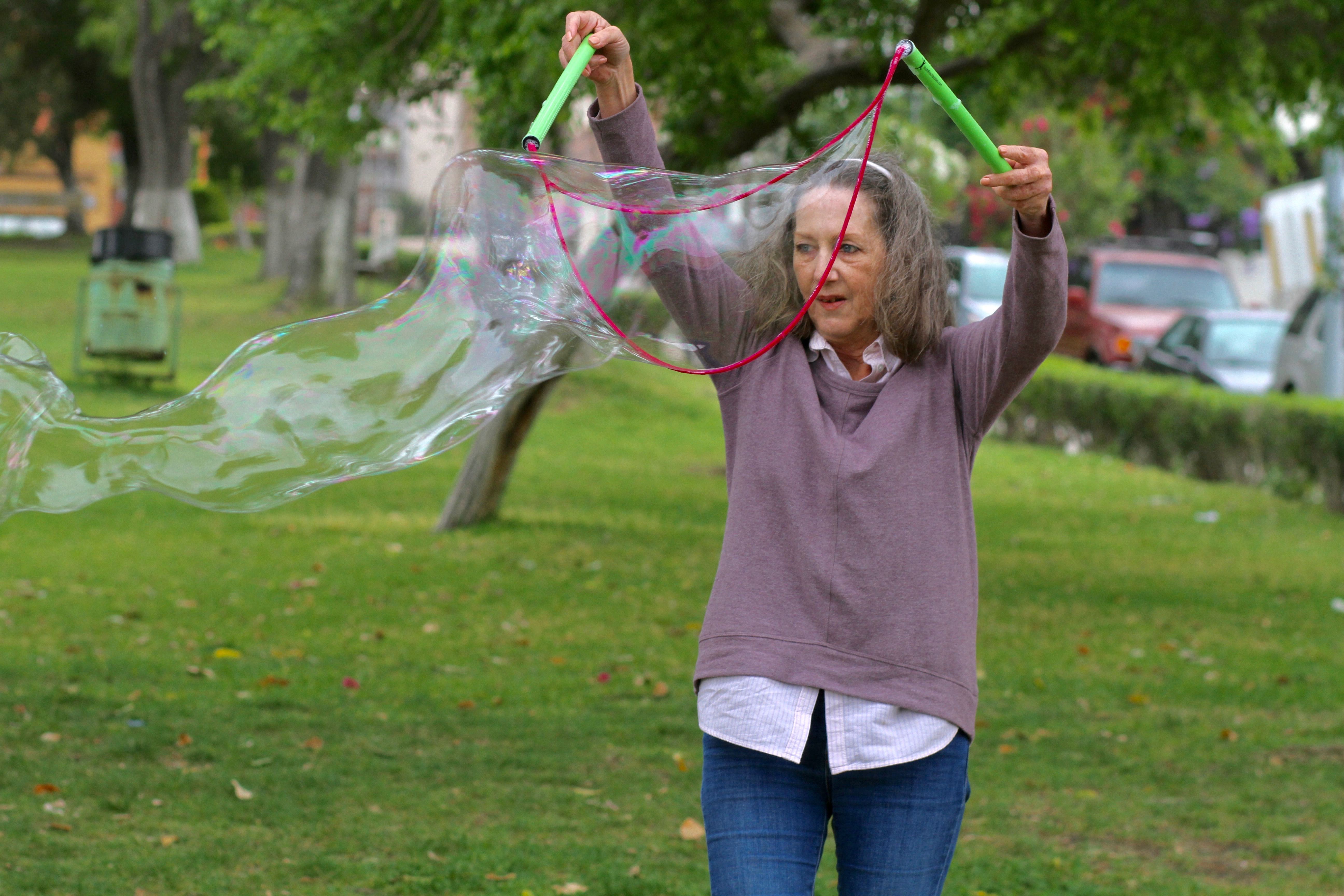Here she is creating a massive bubble at her grandson’s (my nephew) birthday party.