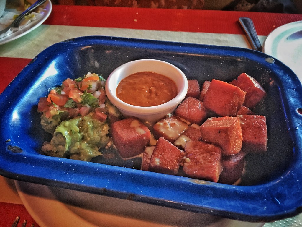 We also ventured and tried something we never had before, the Carnitas de Atun (tuna). Blocks of grilled tuna with some white sauce with almost no flavor, accompanied with guacamole (not for me, but girlfriend said it was bomb), and a hot sauce that was very spicy for my taste.