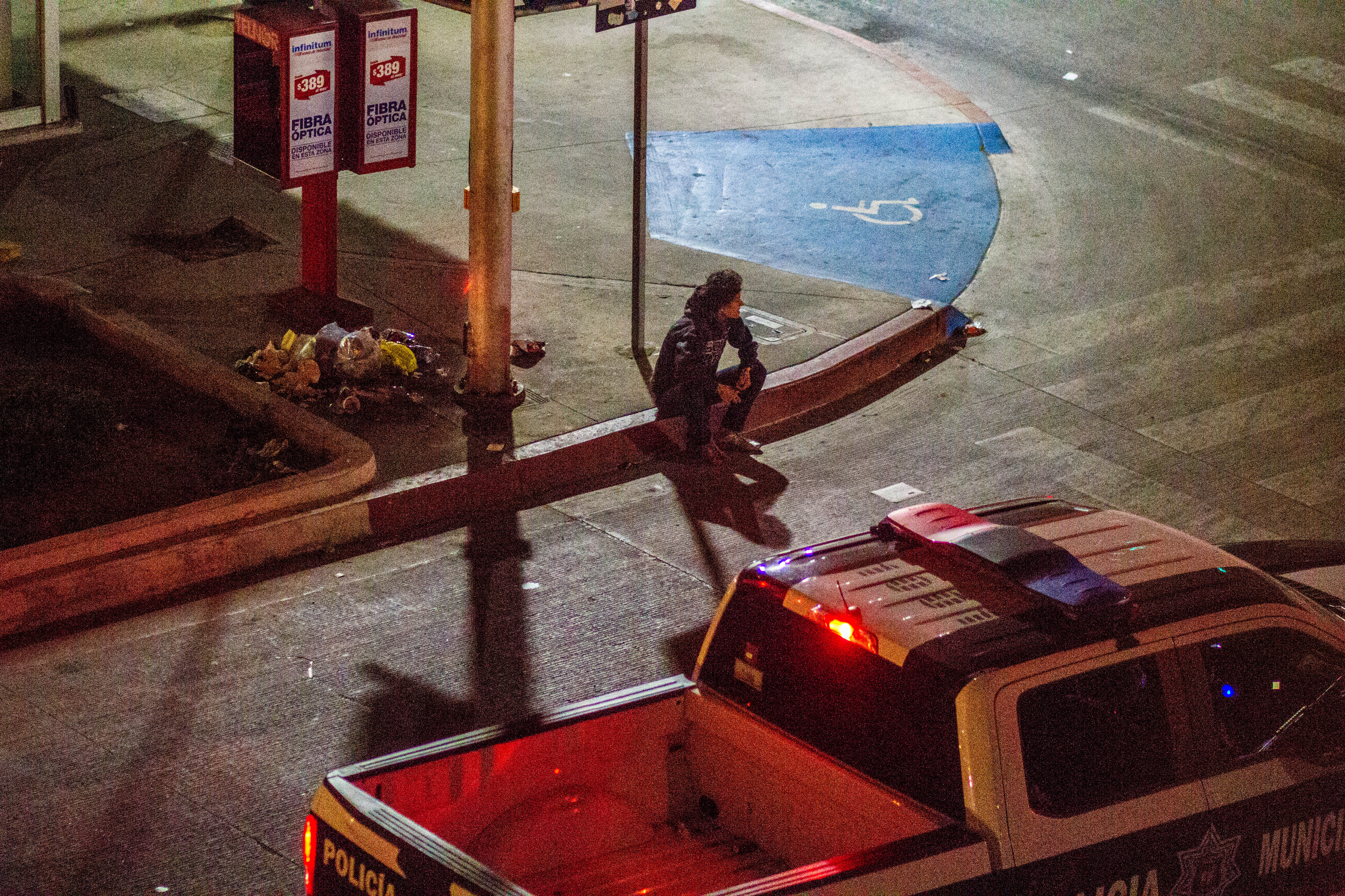 She went to sit by the street pole with all the garbage (garbage trucks come around at 11:00 pm every night in downtown Tijuana). She just sat there. Holding her head. Screaming to herself.