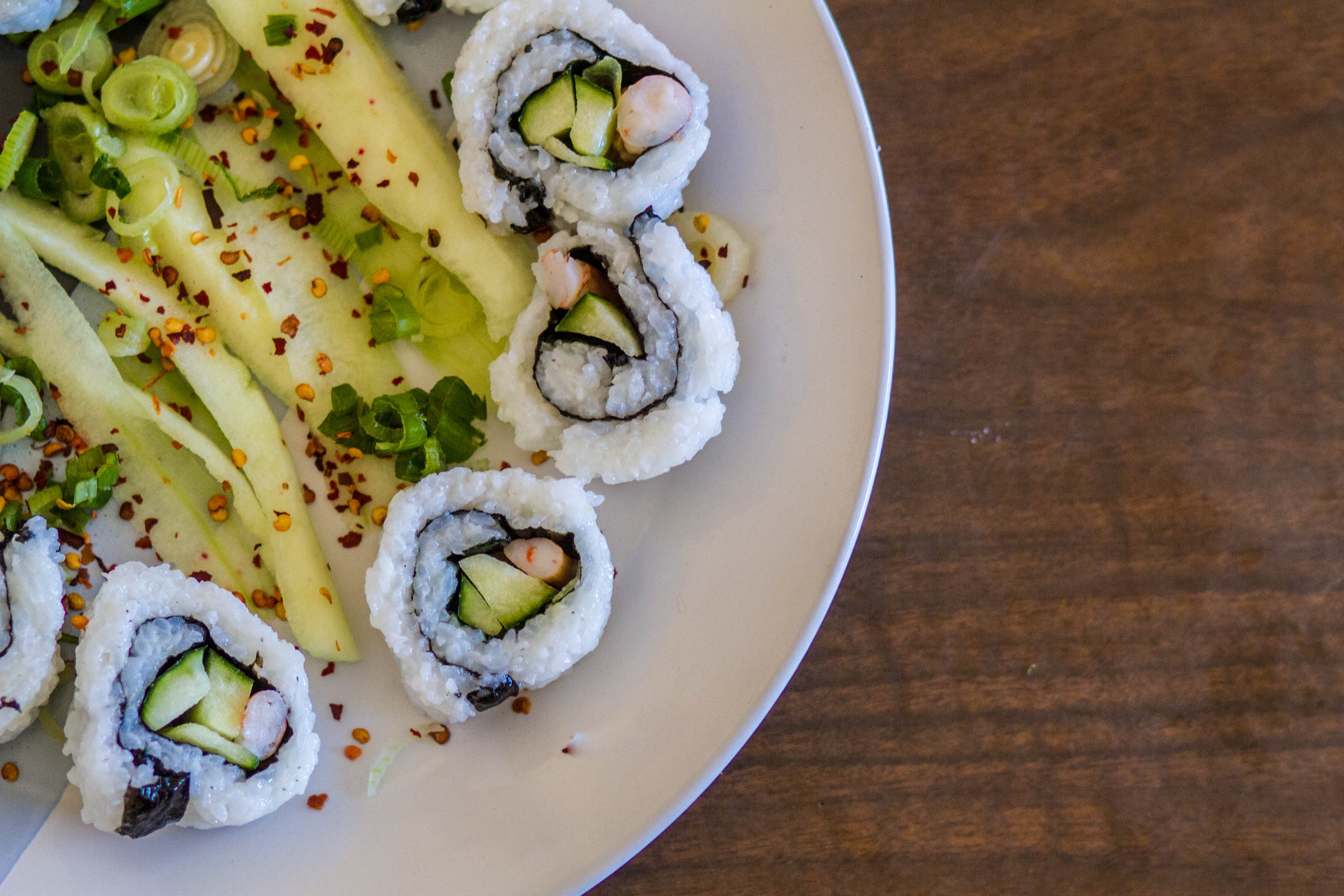 My girlfriend made more sushi yesterday. The Asian store is near her work. So she bought the bamboo sushi pad. Other nice stores are around there too. She spent a lot of money in Parmesan cheese…. (and made a bomb pesto at night!)