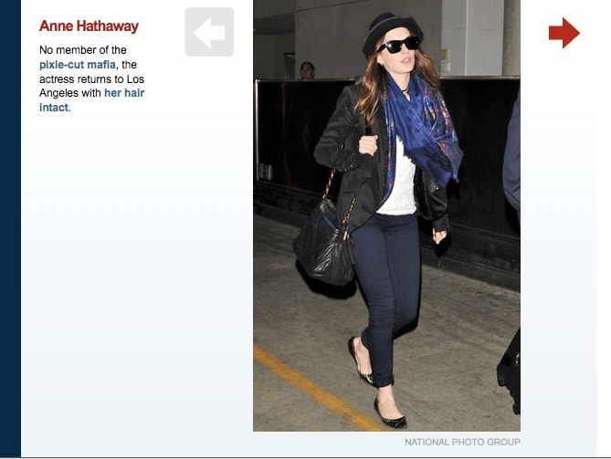 Hah. My only memory of Anne Hathaway is in Air France and I remember being alright, but a tad difficult shoot.