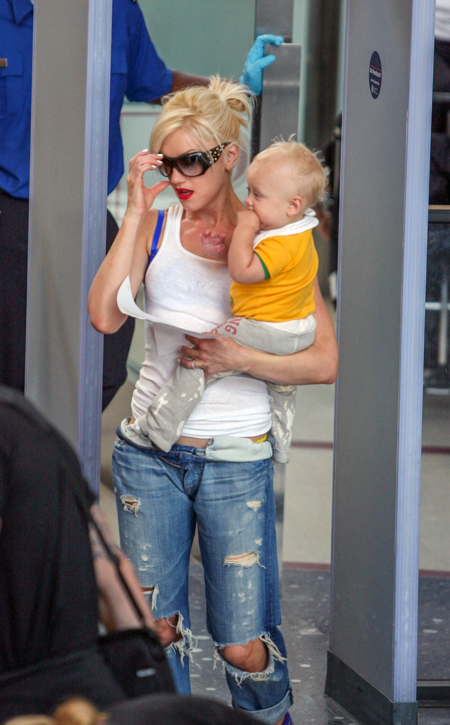 Can’t go through the x-ray machine with sunglasses Gwen!