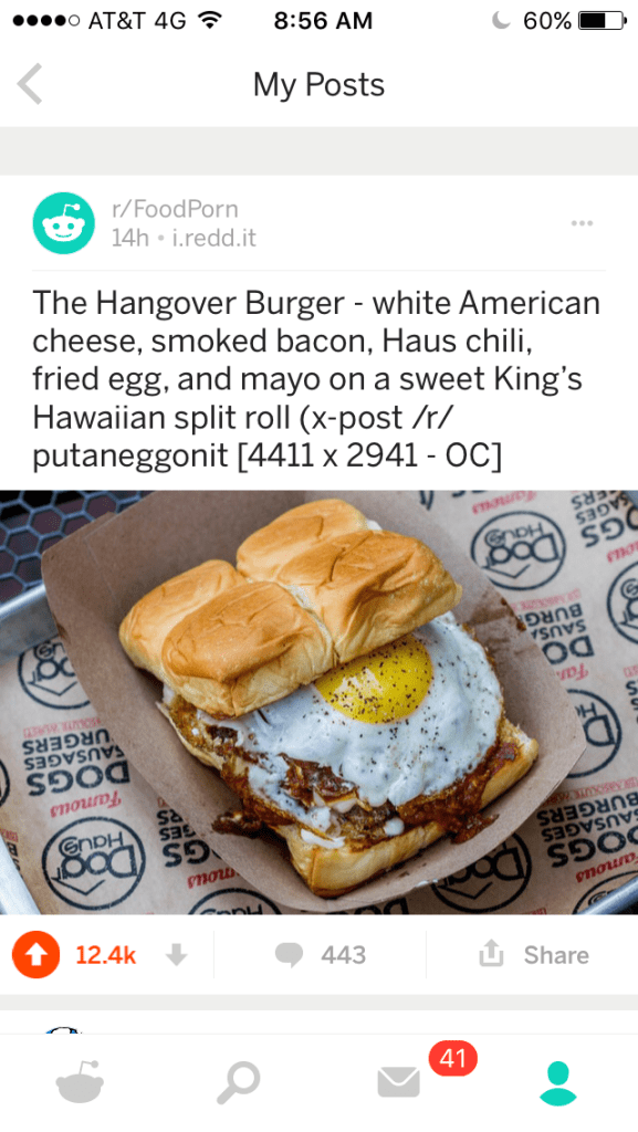 I posted the hangover burger on /r/PutAnEggOnIt the day before and it was very well received that they made it the banner picture of the subreddit!