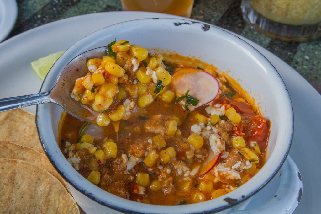 I liked it. Flavorful. A touch of pork to give it sustenance. Cotija was tasty. A good (and overpriced) esquite.