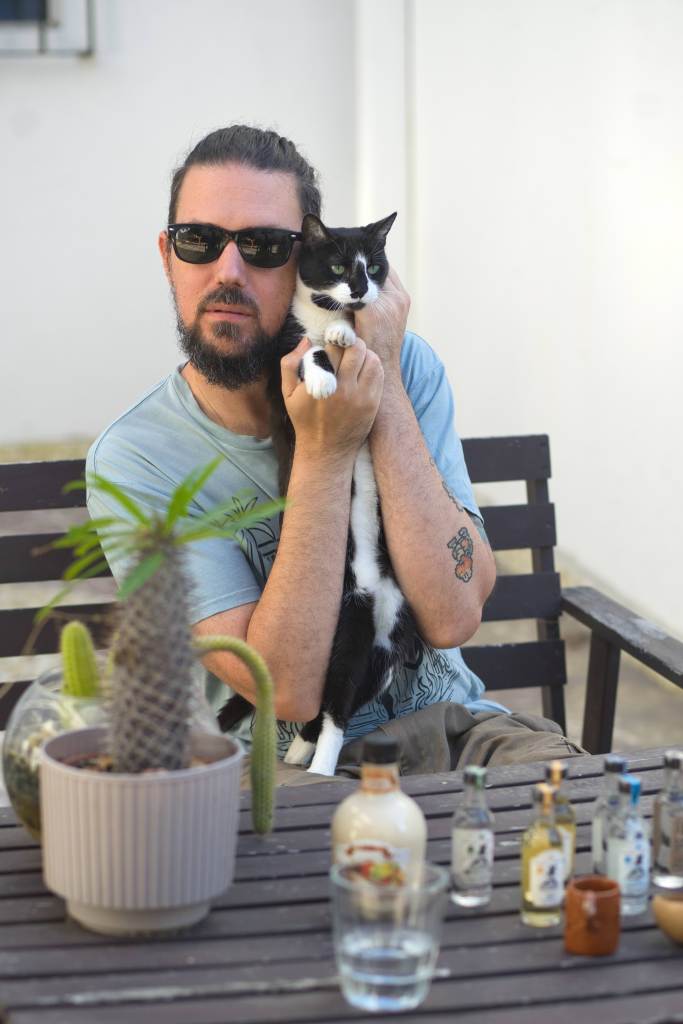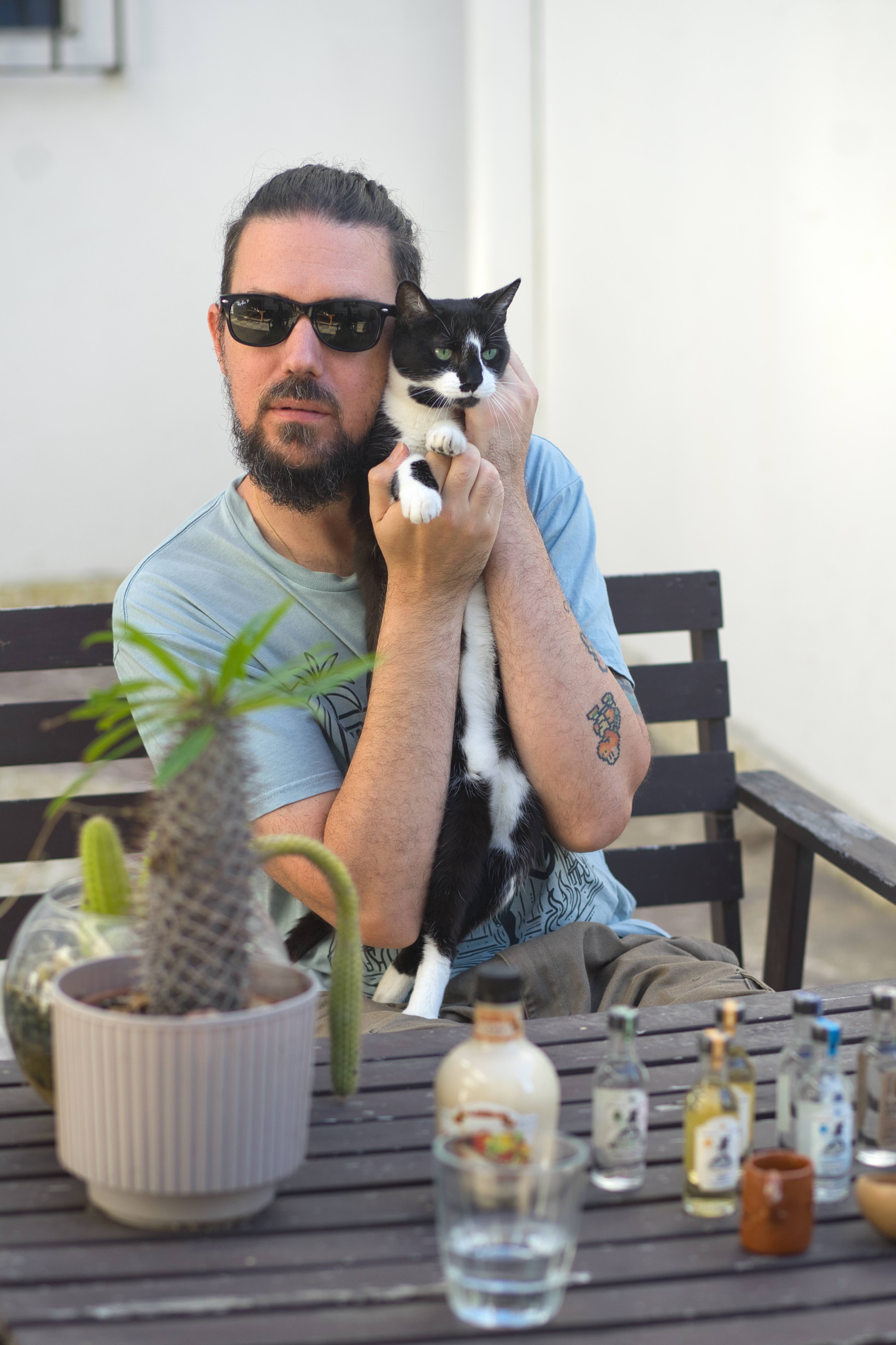 The mezcal was great. Here’s a picture of me and Chimba in my patio drinking some mezcal: